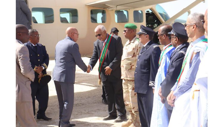 The President of the Republic, who was accompanied by the Wali of Trarza Mr. Mohamed Ould Ahmed Mouloud, was welcomed at the plane’s bridge by Mr. Mohamed Ould Cheikh, the President of the Trarza Region, Mr. Mohamed Mahmoud Ould Mohamed Lamine Ould El Fadel, the Hakem of the Moughataa of Mederdra, Mr. Isselmou Ould Salem, the head of the Borough of Tiguint, Mr. Mohamed Vall Ould Karachi, the Mayor of its Municipality, and the MPs of this Moughataa.