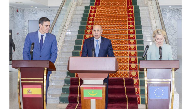 During a joint press conference with the President of the Spanish Government, Pedro Sánchez, and the President of the European Commission, His Excellency the President of the Republic, Mohamed Ould Cheikh El Ghazouani, stressed that this joint visit is of great importance and evidence of the interest that Spain and the European Union attach to the strategic partnership that binds them to Mauritania.
