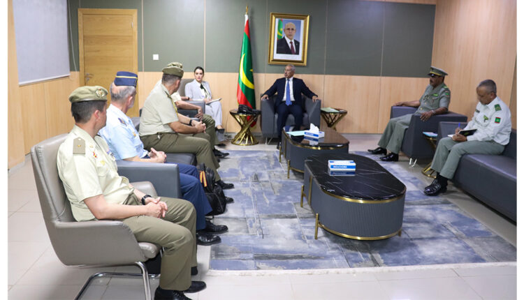 The Minister of National Defence, Hanana Ould Sidi, held talks on Tuesday at his office at the ministry’s headquarters in Nouakchott with a delegation from the Higher Center for National Defense Studies in the Kingdom of Spain, headed by the director of the aforementioned center, Lieutenant General Miguel Ballerella and García de Gamarra.