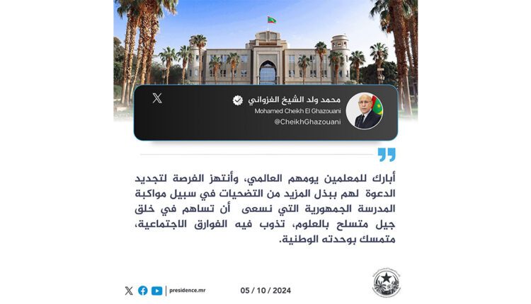 On 5 October, His Excellency Mr. Mohamed Ould Cheikh El Ghazouani, the President of the Republic, congratulated teachers on their international day, which coincides with 5 October each year.