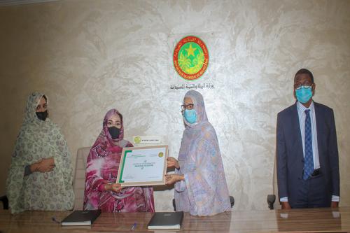 The signing ceremony took place in the presence of the Secretary General of the Ministry of Environment and Sustainable Development, Mr. Abdoul Mamadou Barry and the technical advisor to the Minister of Environment and Sustainable Development in charge of the media, Ms. Toutou Mint Bouka.