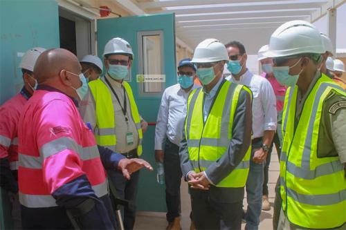 The Minister of Petroleum, Mines and Energy, Mr. Abdessalam Ould Mohamed Saleh, paid a visit on Saturday to the installations of the Tasiast-Mauritania company where he went to the crushing and production plants who was exposed to an accident a few days ago. He also visited the water treatment plant and the production waste treatment plant which transforms polluted liquid materials into solids, thus reducing their dangerousness.