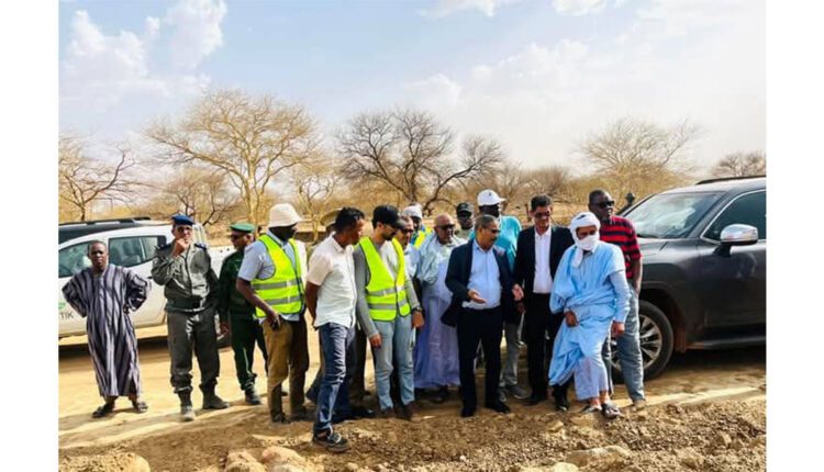 The Minister of Equipment and Transportation, Mr. Ely Ould El Veirik along with the Deputy Governor of the Eastern Hodh region, acting Governor, Mr. Mohamed AbdurrahmanOuld Ahmed Dad, paid a visit yesterday evening, Saturday, to inspect and assess the progress of works on the road axes Amourj – Adel Baghrou and Ashimim – N’ beiket Lhuwash, which are divided into two sections: (Ashimim – Hassi Tajkand) and (Hassi Tajkand – N’beiket Lhuwash).During the visit, the Minister received detailed explanations from those responsible for these important road projects, focusing on the requirements and issues raised, the extent of progress made, the percentage completed, and the expected timelines for completionThe Minister of Equipment and Transportation held a meeting at the governorate with administrative and security authorities, local elected officials, company officials executing the projects, and representatives of supervisory and monitoring offices, during which he emphasized that it is unacceptable for the works of infrastructure projects to be delayed beyond the established deadlines, with a requirement to fully comply with the agreed technical standards stipulated in the commitment document.