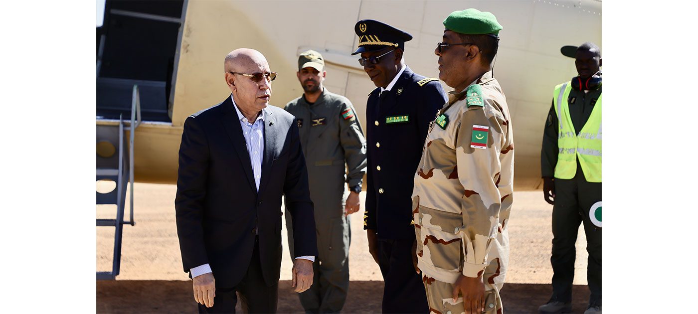 At the airport, His Excellency the President of the Republic was received by the Governor of Brakna, Mr. Mohamed Ould Salem, the Commander of the Seventh Military Region, Colonel Oumar Ould Sidi, the President of the Regional Council of Brakna, Mr. Al-Mustafa Ould Mohamed Mahmoud, the Governor of Bouke District, Mr. Abdelkader Ould Tayeb Ould Chérif, the Mayor of its municipality, Mr. Ba Adama Moussa, the Deputy of the District, Mr. Dia Moussa Al-Hussein, as well as the military and security leaders of the region.