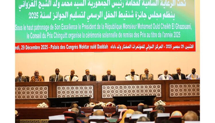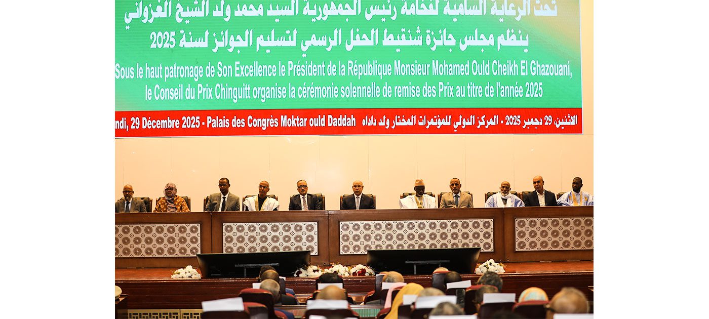 On December 29, 2025- MNA – His Excellency the President of the Republic, Mr. Mohamed Ould Cheikh El Ghazouani, presided today, Monday, at the International Conference Center ‘Moktar Ould Daddah’, over the 2025 Chinguetti Awards ceremony.