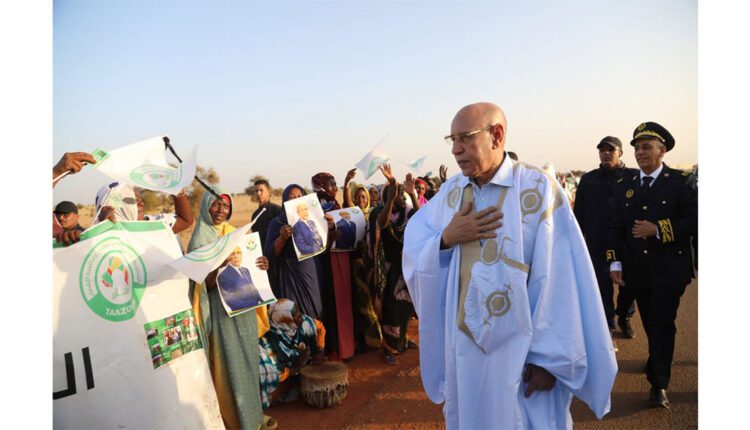 On February 12, after leaving the town of Lekseiba, His Excellency Mohamed Ould Cheikh El Ghazouani stopped to greet a group of beneficiaries of the social programs implemented by the General Delegation for National Solidarity and the Fight Against Exclusion (Taazour). The beneficiaries had organized a gathering along the route of the presidential motorcade.