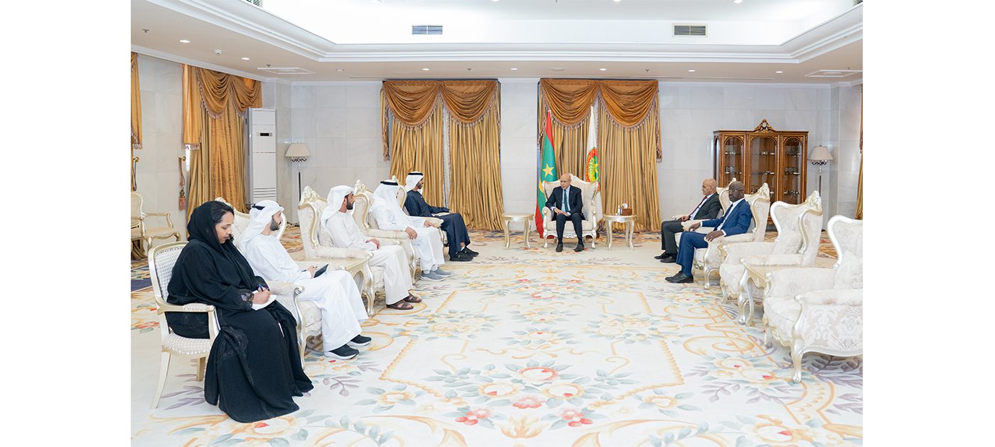 His Excellency the President of the Republic, Mohamed Ould Cheikh El Ghazouani, received a high-level delegation from the United Arab Emirates this Thursday afternoon at the Presidential Palace in Nouakchott. The delegation was led by His Excellency Sheikh Shakhboot bin Nahyan Al Nahyan, Minister of State of the UAE.