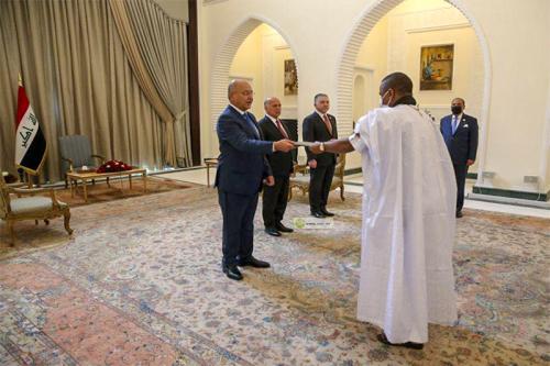 M. El Hacen Mohamed Eleyat, has presented, Monday his credentials to the Iraqi president hisexcellency M.Brahim Saleh,as extrordinay and plenipotentiary ambassador of the republic Islamic of Mauritania in Iraq. During the ceremony, the Mauritanian diplomat transfered greetings of the president of the republic his Excellency M. Mohamed Ould Cheikh El Ghazouani to his brother and friend his Excellency M.Brahim Saleh and his best wishes of health and happiness to him and progress and prosperity for the brotherly Iraqi people.