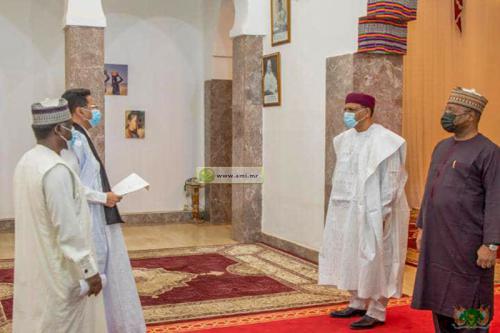 Mr. Sidaty Cheikh Ahmed Aïcha presented, Wednesday in Niamey, to the President of the Republic of Niger, His Excellency Mr. Mohamed Bazoum, the credentials accrediting him in his capacity as Ambassador Extraordinary and Plenipotentiary of the Islamic Republic of Mauritania to the Republic of Niger.