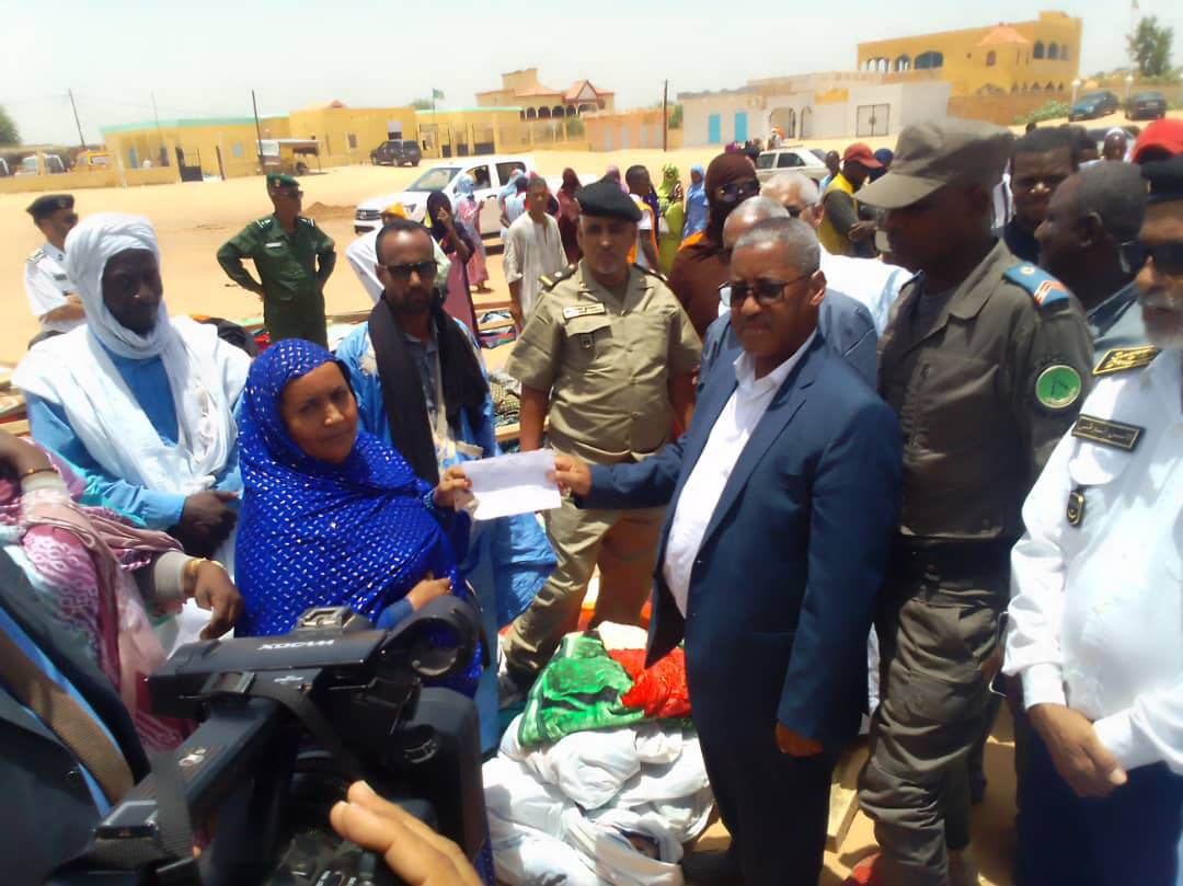 A son tour, le délégué régional du Commissariat à la sécurité alimentaire, M. El Arbi Ould Sidi, a affirmé que son institution a offert une aide composée de 12,4 tonnes de riz, 2,48 tonnes de sucre, 0,992 tonnes d’huile, 50 tentes avec leurs accessoires, en plus d’une quantité de couvertures, de stérilisants, au profit de 248 familles sinistrées, soulignant que la distribution de cette aide sera supervisée par une commission coprésidée par le hakem de la moughataa et le Commissariat à la sécurité alimentaire.