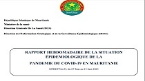 No.23, du 07 Juin au 13 Juin 2021 On 1:43 PM | 16 Août 2022 RAPPORT HEBDOMADAIRE DE LA SITUATION ÉPIDEMIOLOGIQUE DE LA PANDEMIE DU COVID-19 EN MAURITANIE Télécharger