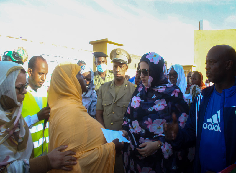 La ministre de l’Action sociale supervise une campagne d’assistance aux familles sinistrées suite aux pluies dans la moughataa d’El Mina