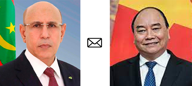 Le Président de la République, Son Excellence Monsieur Mohamed Ould Cheikh El Ghazouani a adressé vendredi le message de félicitations qui suit au Président de la République du Vietnam, Son Excellence M. Nguyen Xuan Phuc, à l’occasion de la fête nationale de son pays