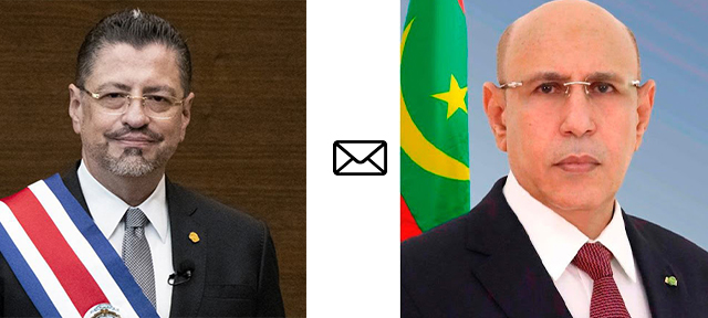 Son Excellence le Président de la République, Monsieur Mohamed Ould Cheikh El Ghazouani, a adressé le message de félicitation qui suit à Son Excellence Monsieur Rodrigo Chaves, Président de la République de Costa Rica, à l’occasion de la célébration de la fête nationale de son pays :