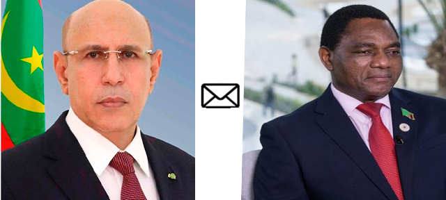 Le Président de la République, Son Excellence M. Mohamed Ould Cheikh El Ghazouani, a adressé un message de félicitations à Son Excellence Monsieur Hakainde Hichilema, Président de la République de Zambie à l’occasion de la célébration de la fête nationale de son pays.