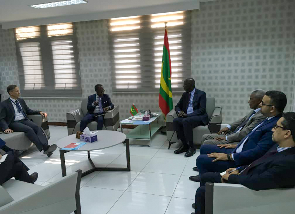 Le ministre des Affaires économiques et de la Promotion des Secteurs productifs, M.Ousmane Mamoudou Kane, a reçu,mercredi à Nouakchott, une mission de l’Union Européenne(UE), conduite par le Haut Représentant de Coalition pour le Sahel, Djimé Adoum, à la tête d’une délégation de sa coalition et en compagnie de l’ambassadeur de l’UE en Mauritanie, SEM. Jones Guilym.