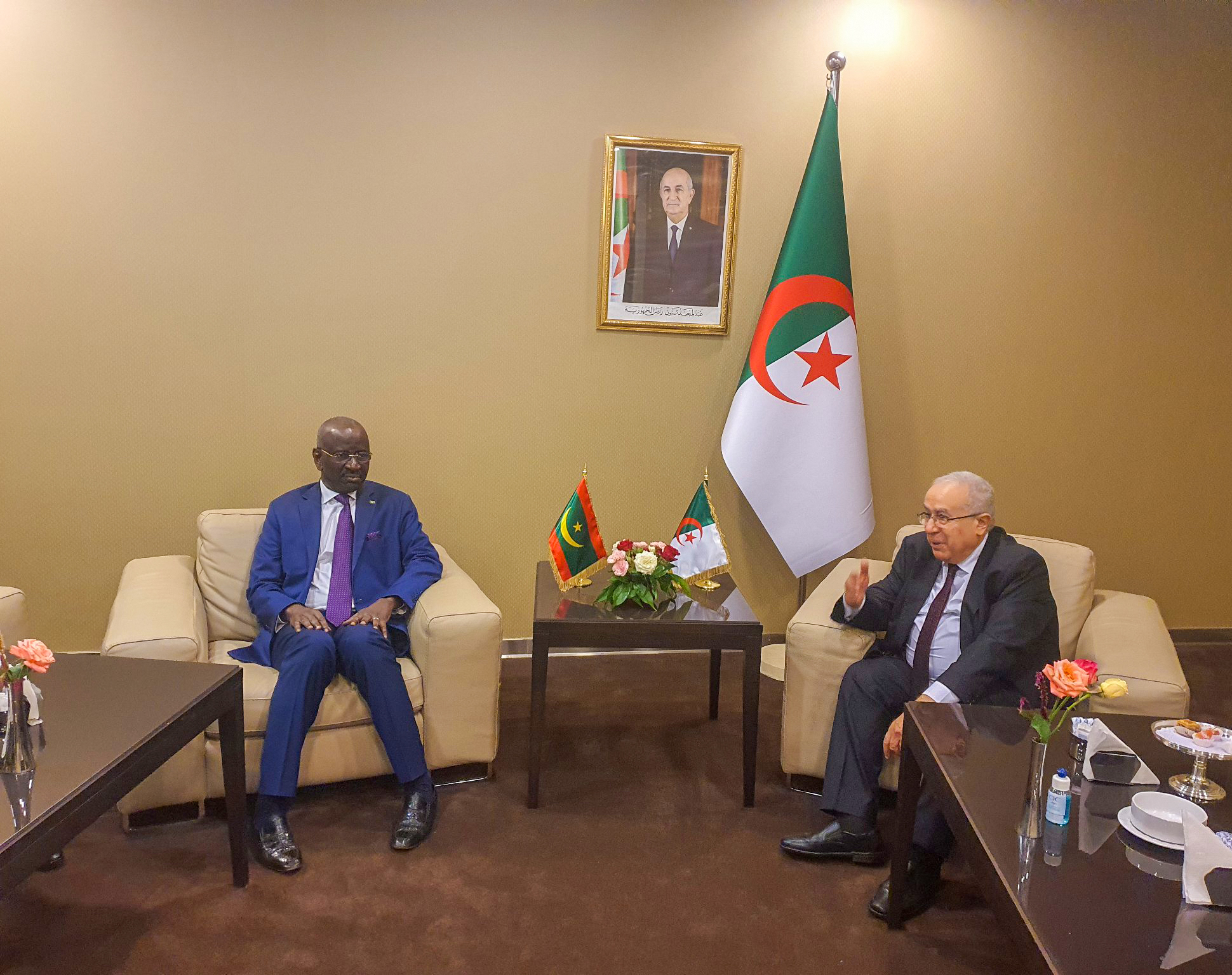 La rencontre s’est déroulée en présence de MM. Weddady Sidi Haiba, notre ambassadeur en Algérie, Sidi Mohamed Mohamed Abdallahi, notre ambassadeur en Egypte, délégué permanent auprès de la ligue des états arabes, Hasni Lefghih, ambassadeur, chargé de mission et Mohamed Lemine Moulaye Ely, ambassadeur, directeur général de la coopération multilatérale au ministère des affaires étrangères.