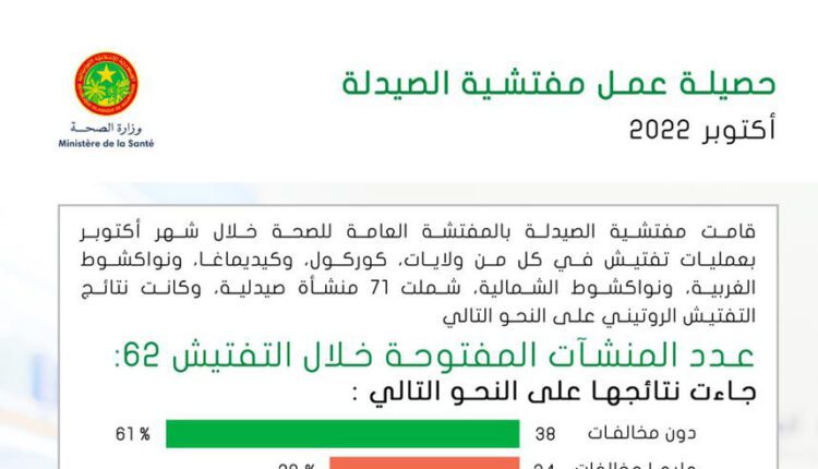 Le ministère de la Santé a rendu public, ce jeudi à Nouakchott, le bilan des travaux de l’Inspection générale des pharmacies pour le mois d’octobre dernier.