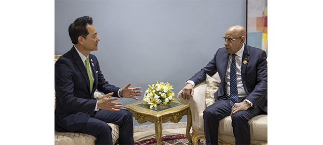 Le Président de la République, Son Excellence Monsieur Mohamed Ould Cheikh El Ghazouani, a reçu en audience , samedi, en marge de sa participation à la 18eme session du sommet de la francophonie, dans la ville tunisienne de Gerba, M. Jang Sung Min, envoyé spécial du Président de la République de Corée, son Excellence Monsieur Yoon Suk-yeol,