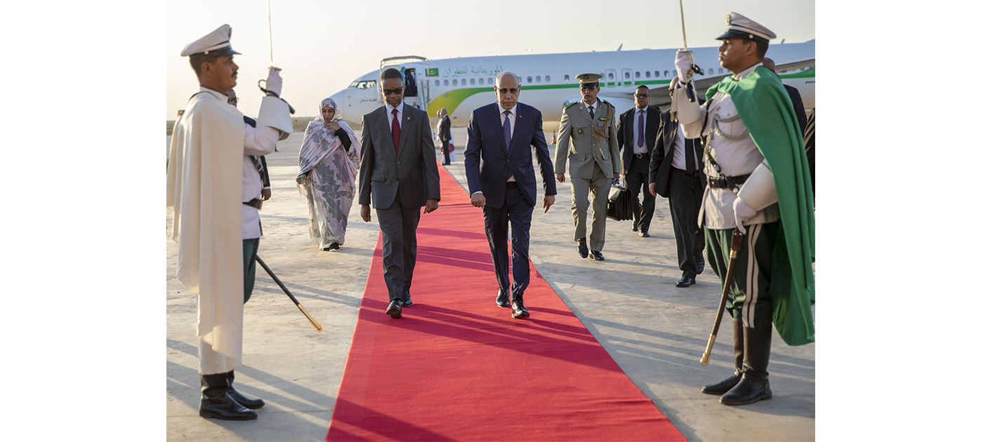 Son Excellence le Président de la République a été accueilli à l’Aéroport International de Nouakchott Oumtounsy, par le Premier ministre, M. Mohamed Ould Bilal Massoud, la ministre conseillère à la Présidence de la République, les ministres de la Justice et de la Défense Nationale, le chef de l’état-major particulier du Président de la République, le directeur adjoint de Cabinet du Président de la République, le wali de Nouakchott Ouest et la présidente de la région de Nouakchott.
