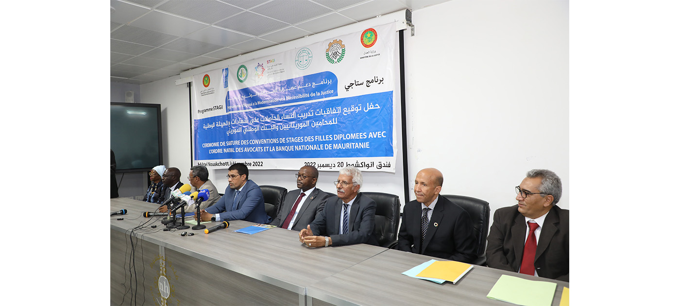 Une cérémonie de lancement de signature des conventions de stages pour les filles diplômées, a été organisée, mardi à Nouakchott, par le ministère de emploi et de la Formation professionnelle avec la collaboration avec le ministère de la Justice et la Banque nationale de la Mauritanie.