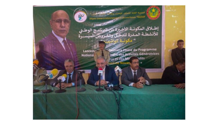 Le délégué général à la solidarité nationale et à la lutte contre l’exclusion, M. Mohamed Ali Ould Sidi Mohamed, en compagnie du wali de Dakhlet-nouadhibou, M. Yahya Ould Cheikh Mohamed Vall, a supervisé, mardi à Nouadhibou, le lancement de la dernière composante du programme national de financement des projets générateurs de revenu au niveau de la Wilaya.