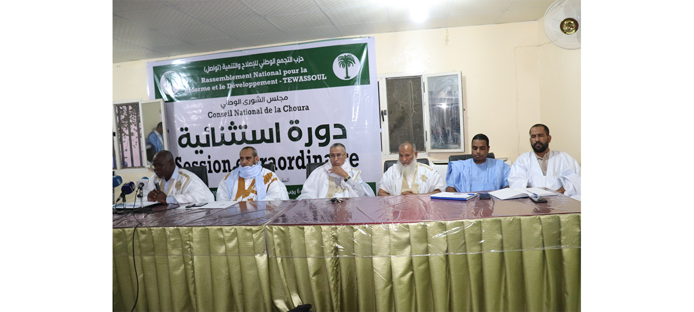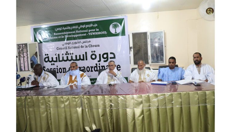 Le Conseil national de la Choura du Rassemblement national pour la réforme et le développement (Tawassoul) a tenu, vendredi soir, une session extraordinaire dans son siège central à Nouakchott Ouest pour ratifier les documents internes du parti et le plan de travail pour l’année 2023 en cours.