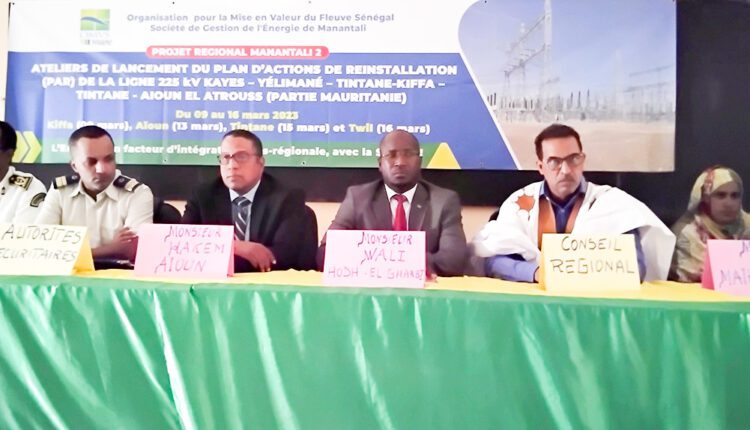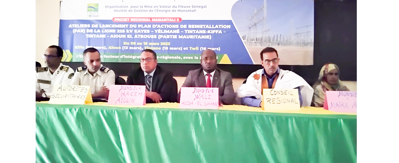Les travaux d’un atelier de concertation sur les mécanismes assurant le passage en toute sécurité de la ligne électrique haute tension qui alimentera en électricité les villes de Kiffa, Tintane, Aïoun et Twil ont été lancés, lundi à Aïoun, sous la supervision de la SOGEM, organe de l’Organisation de la Mise en Valeur du fleuve Sénégal (OMVS). Cette importante ligne sera d’une longueur de 316 km en territoire mauritanien et sera d’une tension électrique de 225 kV.
