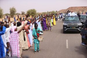 Massées sur les abords de la route qui mène de l’entrée de la ville jusqu’au site du festival, les populations de Djeol scandaient les drapeaux, les portraits géants du Président de la République et les banderoles louant les réalisations accomplies au cours de ces dernières années dans le pays en général et en particulier au niveau de la zone du fleuve.