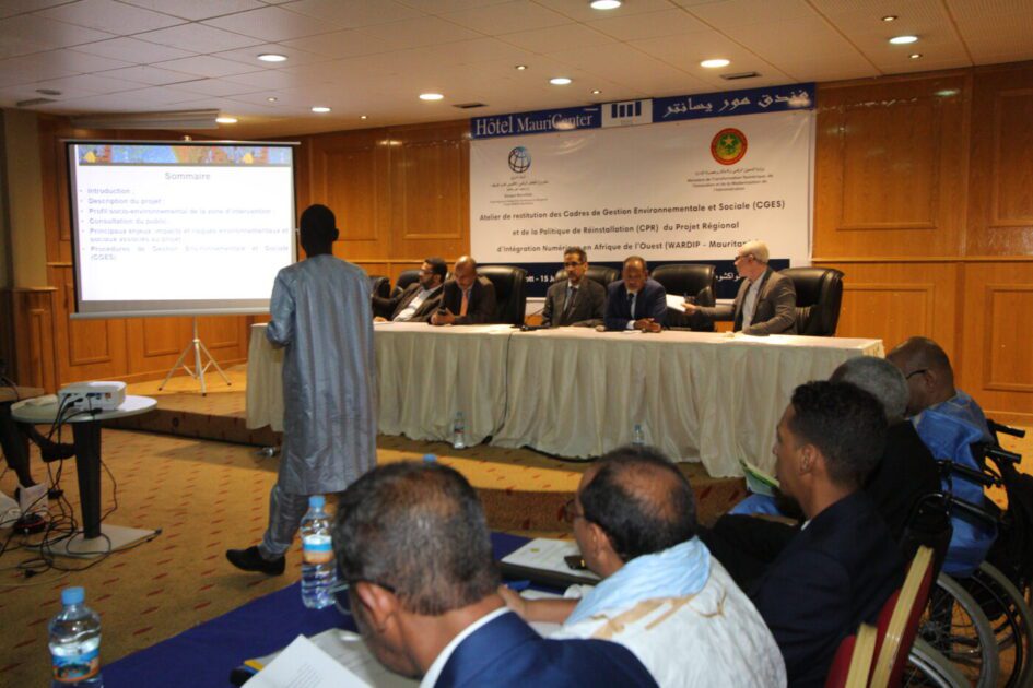 Les travaux d’un atelier de restitution des Cadres de Gestion Environnementale et Sociale (CGES) et de la Politique de Réinstallation (CPR) du Projet Régional d’Intégration Numérique en Afrique de l’Ouest (WARDIP-Mauritanie) ont débuté, jeudi, à Nouakchott, à l’initiative conjointe du ministère de la Transmission numérique, de l’Innovation et de la modernisation de l’Administration et la Banque mondiale.