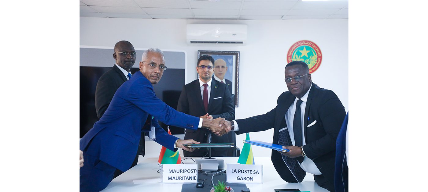 Le ministre de la Transformation Numérique, de l’Innovation et de la Modernisation de l’Administration, M. Mohamed Abdallah Louly, a supervisé, ce lundi à Nouakchott, la signature d’un accord de coopération entre la Société Mauritanienne des Postes (Mauripost) et la Poste de la République du Gabon, cosigné par le Directeur Général de la Société Mauripost M. Aly Ould Issa et le Directeur général Adjoint de poste gabonaise, M. Johns Bouati Abinka.