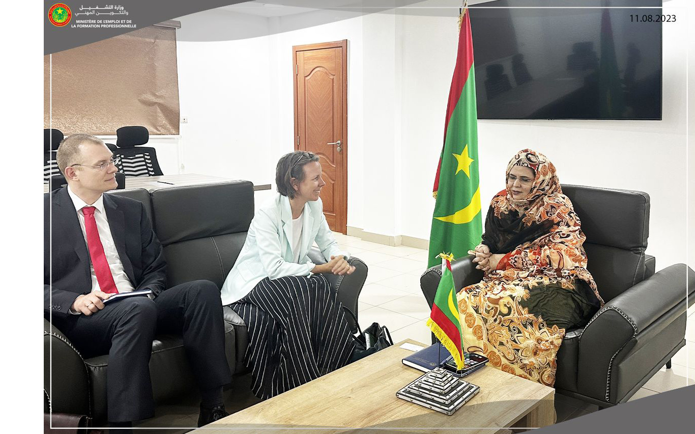 L’entrevue s’est déroulée en présence de la conseillère en charge de la communication, Mme Aicha Lek’hal, et du directeur général de la formation professionnelle, M. Sid4Ahmed Ould Eyouh.