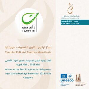 – Le Centre ‘’Teranim’’ (mélodies) pour les Arts populaires traditionnels de Mauritanie a remporté le Prix des Meilleures Pratiques pour la Préservation du Patrimoine Culturel, pour son expérience remarquable dans la préservation du patrimoine du chant, notamment du Medih (louanges du Prophète, Paix et Salut sur Lui), et sa transmission aux générations futures, ce qui a contribué à valoriser et faire revivre ce patrimoine culturel.