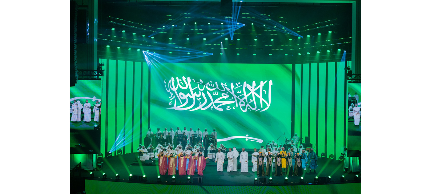 Au cours de la cérémonie, l’orchestre saoudien a présenté un spectacle musical qui a enchanté le public, car le spectacle comprenait un mélange d’airs folkloriques et traditionnels, avec la participation de l’orchestre et du Chorale nationale, qui revenaient tout juste de New York après une longue tournée au Mexique, à Londres et à Paris.