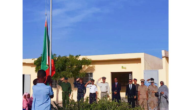Nouadhibou, M. Mahi Ould Hamed, a présidé, jeudi à l’école n°1 à Laareiguib, la levée du drapeau au rythme de l’hymne national chanté par les élèves.