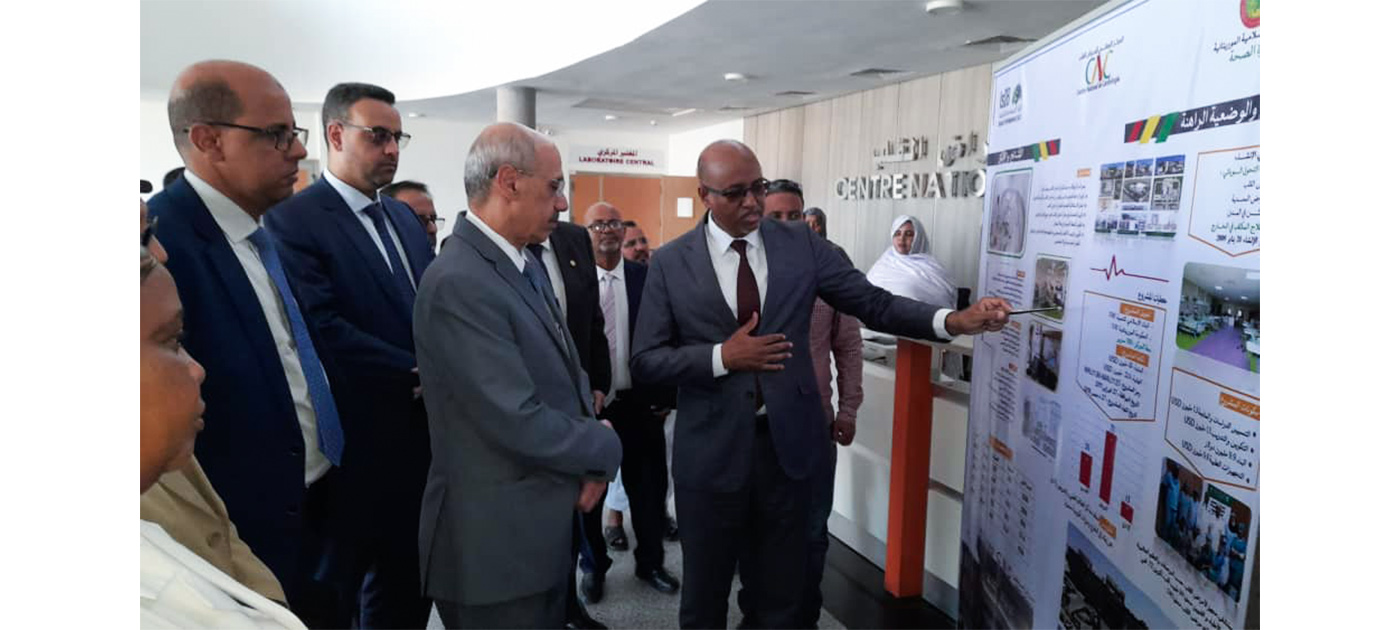 La délégation s’est rendue dans tous les pavillons du CNC et a reçu des explications techniques fournies par le directeur général du Centre, Pr. Ahmed Ould Ebba, sur les prestations dispensées par cette importante structure de santé du pays.