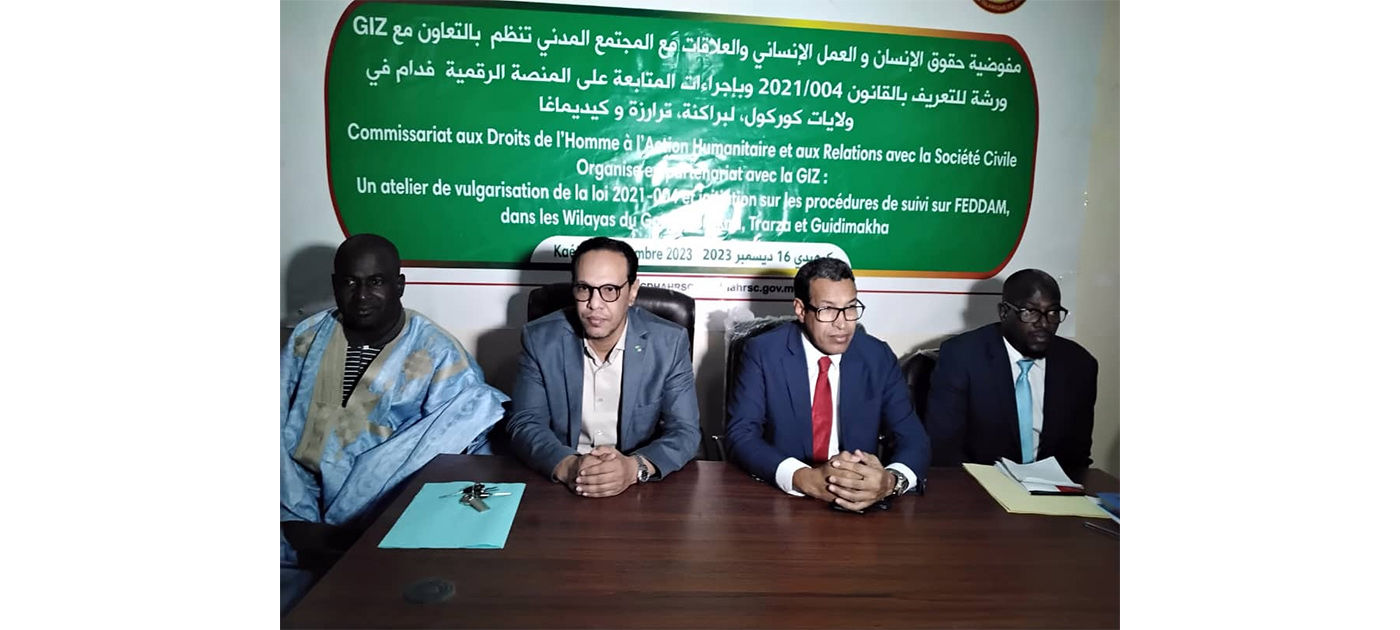 Les travaux d’un atelier de vulgarisation de la loi n°2021/004 sur les procédures de suivi sur FEDDAM dans les wilayas du Grogol, du Brakna, du Trarza et du Guidimagha ont débuté ce samedi à Kaédi