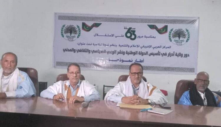 Le Centre Arabo-Africain d’information et de Développement a organisé, vendredi soir à Atar, un colloque sous le thème : « Le rôle de la wilaya de l’Adrar dans la création de l’Etat national et dans l’éveil politique, culturel et professionnel, Atar comme modèle ».