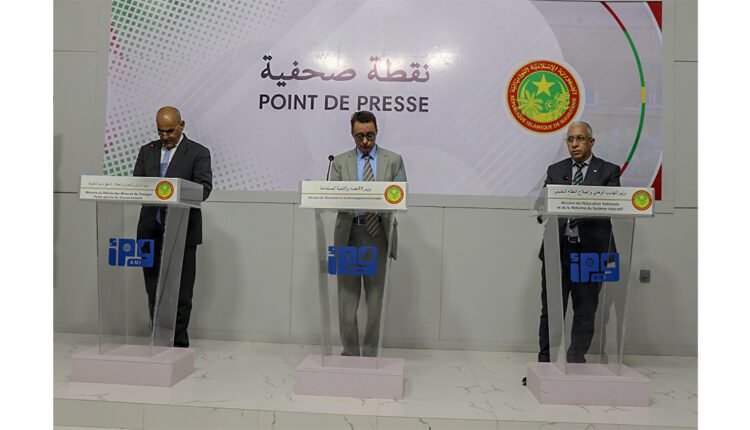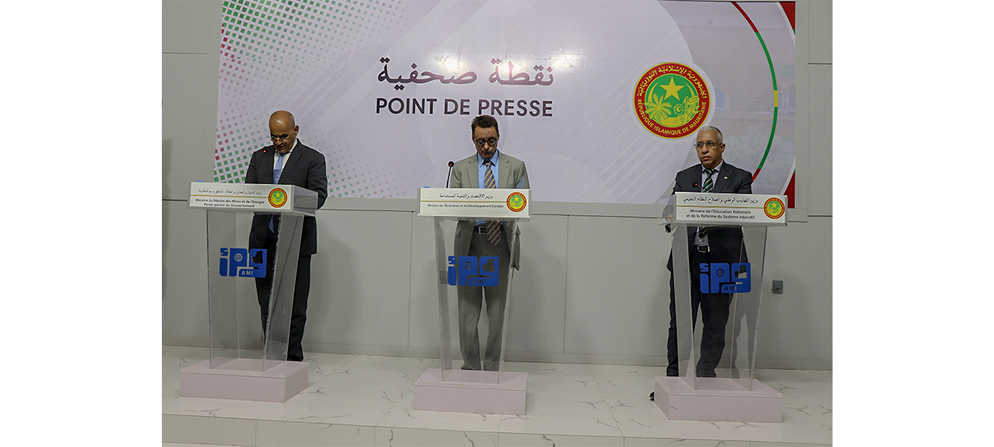 Des membres du Gouvernement ont commenté, mercredi après-midi, les résultats des travaux du conseil des ministres tenu tôt dans la matinée. Il s’agit des ministres du Pétrole, de l’Énergie et des Mines, porte-parole du gouvernement, M. Nany Ould Chrougha, de l’Économie et du Développement Durable, M. Abdessalam Ould Mohamed Saleh et de l’Éducation nationale et de la Réforme du Système éducatif, M. Mocktar Ould Dahi.