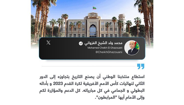 Son Excellence le Président de la République, Mohamed Ould Cheikh El -Ghazouani, a déclaré que l’équipe nationale « Mourabitoune » est entrée dans l’histoire par sa performance héroïque et collective dans tous ses matchs de la phase finale de la Coupe d’Afrique des Nations 2023.