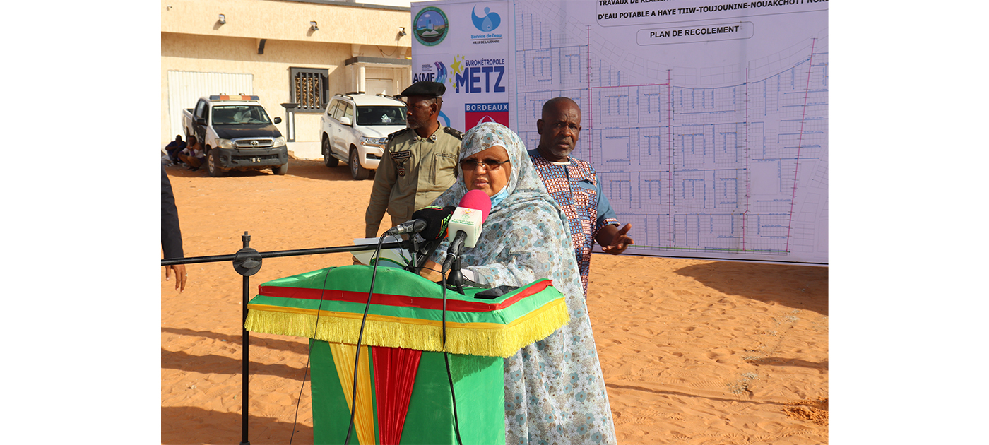 Dans son allocution pour la circonstance, la Présidente de la Région de Nouakchott a indiqué que le lancement de ce projet vient en appui des engagements de Son Excellence le Président de la république, Monsieur Mohamed Ould Cheikh Ghazouani, visant à fournir un accès à l’eau potable à tous les citoyens, à travers l’extension du réseau d’eau, le raccordement gratuit de plus de 4500 familles au réseau d’eau, avec 16 écoles dans les quartiers de la capitale raccordées au réseau d’eau, ainsi que la distribution quotidienne de l’eau dans les quartiers périphériques de la ville qui ne sont pas encore raccordés au réseau.