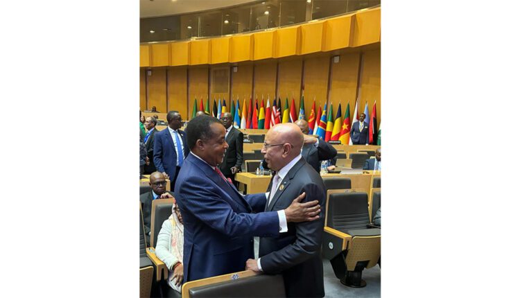 Son Excellence le Président de la République, Président en exercice de l’Union Africaine, M. Mohamed Ould Cheikh El Ghazouani, s’est entretenu dimanche matin en marge de la trente-septième session ordinaire de la Conférence générale des Chefs d’État et de Gouvernement de l’Union africaine, avec Son Excellence le Président de la République du Congo, M. Denis Sassou Nguesso.
