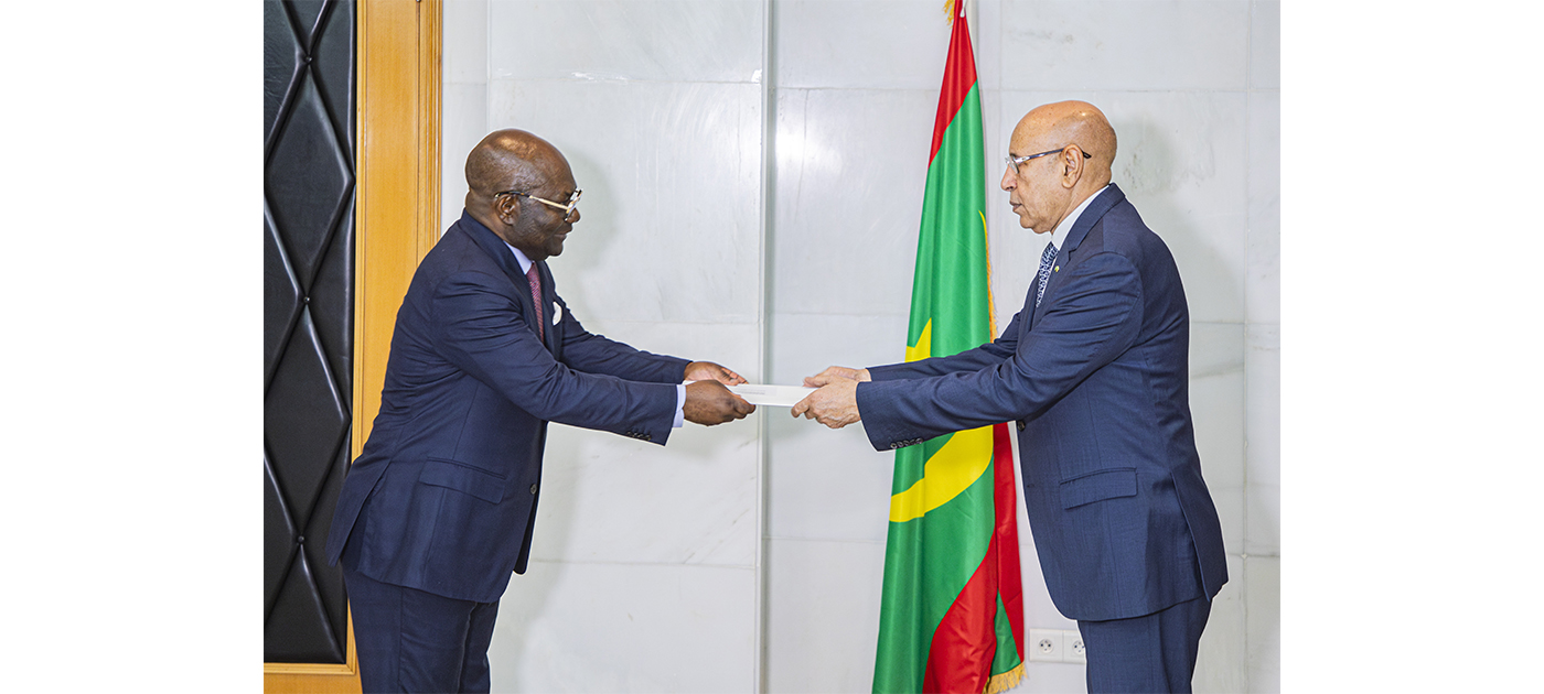 Son Excellence le Président de la République M. Mohamed Ould Cheikh El Ghazouani a reçu mardi au Palais présidentiel à Nouakchott les lettres de créance de S.E.M. Adao Pinto, en sa qualité d’ambassadeur extraordinaire et plénipotentiaire de la République d’Angola auprès de la République Islamique de Mauritanie.Dans une déclaration à l’Agence Mauritanienne d’Information à l’issue de l’entretien, le diplomate angolais a affirmé que la Mauritanie et l’Angola œuvreront ensemble pour améliorer leurs relations de coopération bilatérale, ce sur quoi a d’ailleurs insisté le Président de la République M. Mohamed Ould Cheikh El Ghazouani, et qui ne manquera pas de se réaliser, Inchaa Allah.