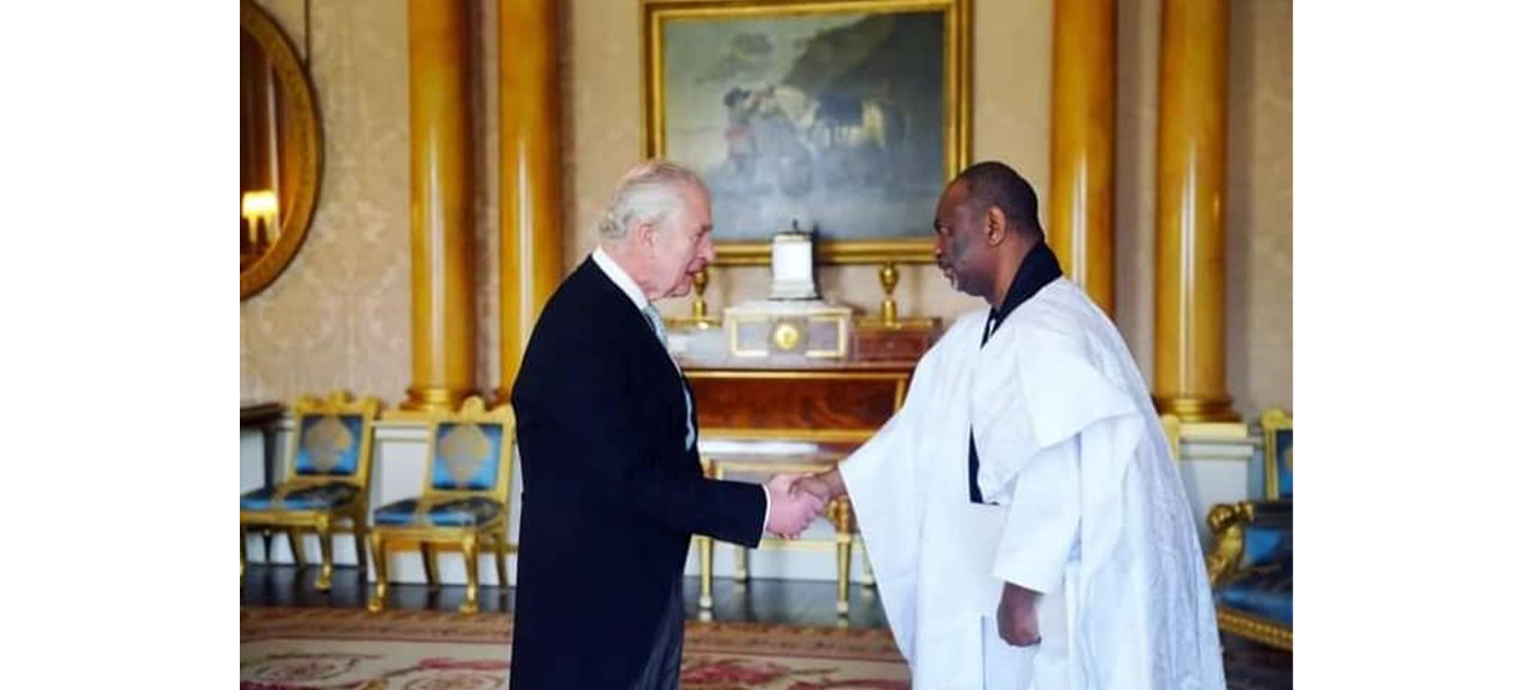 SEM. Ba Samba Mamadou, ambassadeur de notre pays à Londres, a présenté mercredi 6 mars courant au Palais de Buckingham, ses lettres de créance à Sa Majesté Charles III, roi du Royaume-Uni de Grande-Bretagne et d’Irlande du Nord, en sa qualité d’ambassadeur de la République Islamique de Mauritanie auprès du Royaume-Uni.