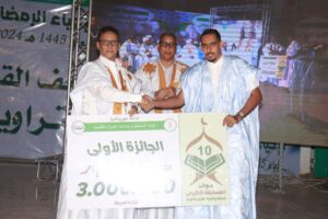 Le premier prix doté de trois millions 3.000.000 MRO a été remis par le ministre de la Culture, de la Jeunesse, des Sports et des Relations avec le Parlement, le deuxième prix d’un montant de 2 000 000 MRO par le ministre des affaires islamiques et de l’enseignement originel et le troisième prix d’un montant de 1 000 000 MRO par la ministre de la santé.