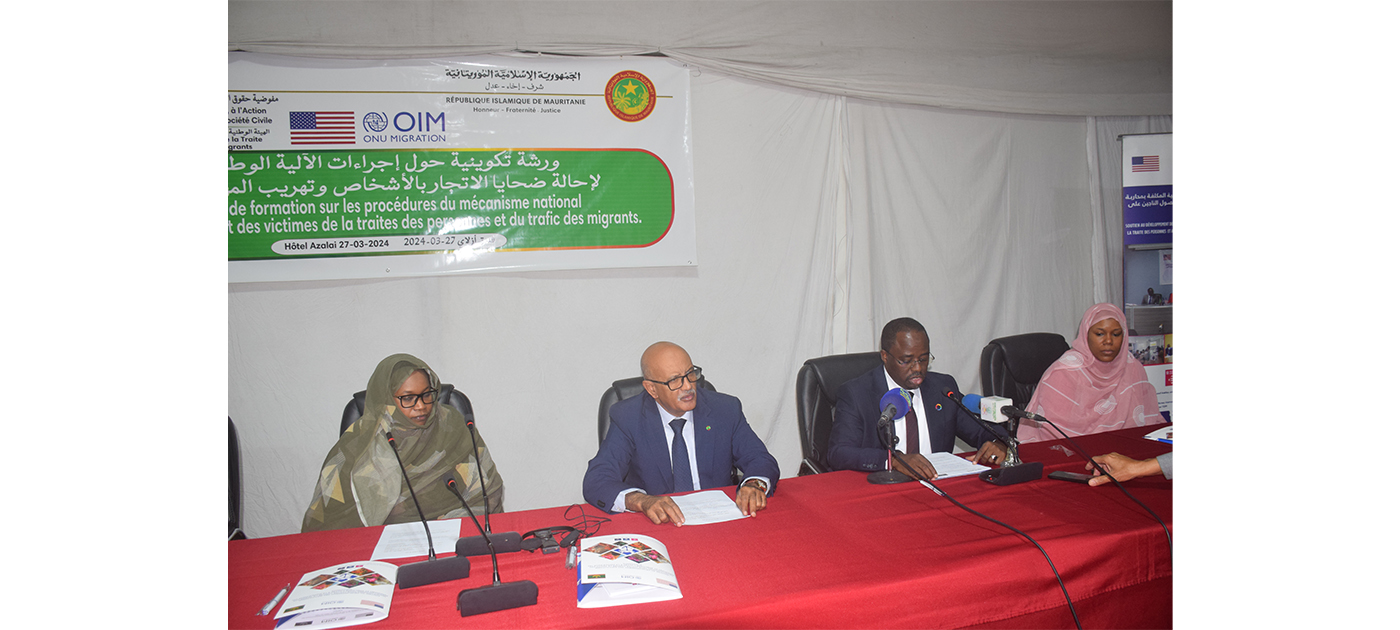 Dans une allocution prononcée à cette occasion, le directeur général de l’Autorité nationale de lutte contre la traite des personnes et le trafic illicite de migrants, Cheikh Tourad Ould Abdel Maleck, a expliqué que le gouvernement mauritanien a approuvé en janvier dernier la mise en place d’un mécanisme national de référencement des victimes de la traite des personnes et du trafic illicite de migrants auprès de l’Autorité nationale de lutte contre la traite des personnes et le trafic illicite de migrants, qui a pour mission de veiller au respect des droits fondamentaux des victimes de la traite des personnes et du trafic illicite de migrants, de les identifier, de les orienter et de veiller à ce qu’ils soient pris en charge.
