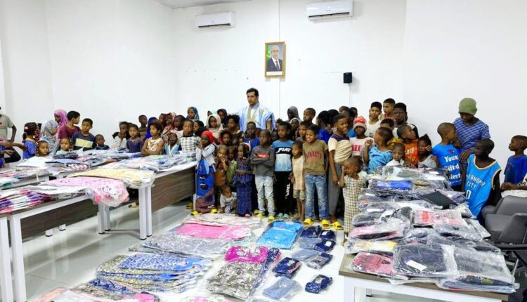 Le président de la région d’Inchiri, M. Cheikh Malainine Abedi Gharabi, a supervisé, lundi à Akjoujt, la distribution de vêtements d’El Id à 400 enfants orphelins à Akjoujt et à Benichab, en plus de fauteuils roulants aux personnes ayant des besoins spéciaux.