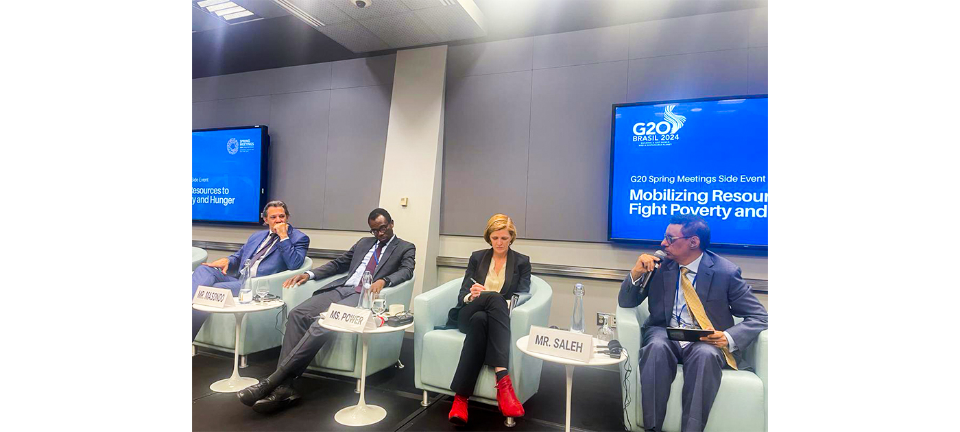 Le ministre de l’Économie et du Développement durable, M. Abdessalam Ould Mohamed Saleh, en tant qu’orateur principal, a participé, mercredi, à la session de haut niveau sur la mobilisation des financements pour lutter contre la pauvreté et la faim, organisée en marge des réunions de printemps 2024 du G20, actuellement présidé par le Brésil.