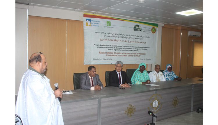 Le ministère de l’Environnement, en collaboration avec l’Observatoire du Sahara et du Sahel (OSS), a organisé, mardi à Nouakchott, un atelier national pour l’élaboration d’un document global en vue d’un projet visant à améliorer la capacité des communautés pastorales et oasiennes à s’adapter aux effets négatifs du changement climatique dans les régions de ‘’Ziara’’ et Dhaira, situées dans la Wilaya de l’Adrar.