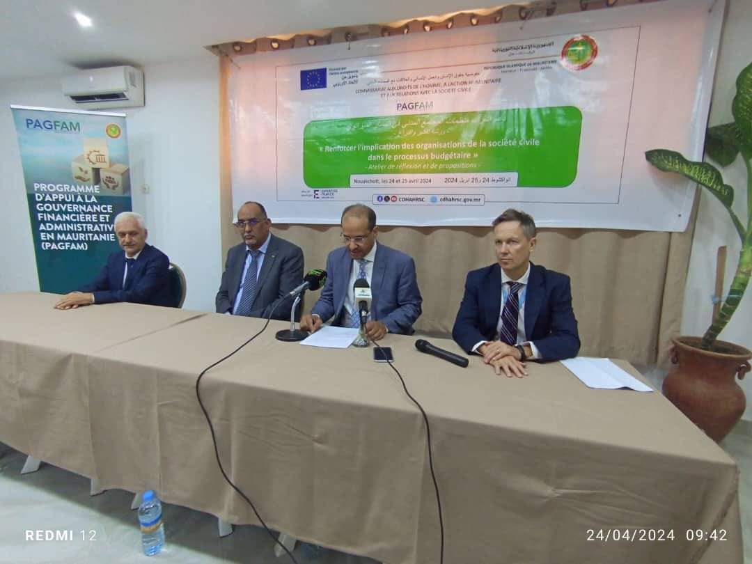 Le Commissaire aux Droits de l’Homme, à l’Action Humanitaire et aux Relations avec la Société Civile, M. Cheikh Ahmadou Ould Ahmed Salem Ould Sidi, a supervisé, mercredi, à Nouakchott, en présence du Ministre des Finances, M. Islamou Ould Mohamed Ambadi, le lancement de l’atelier de préparation d’un plan d’action (2024/2026) visant à renforcer l’implication des organisations de la société civile dans la préparation, la mise en œuvre et le suivi du processus budgétaire.
